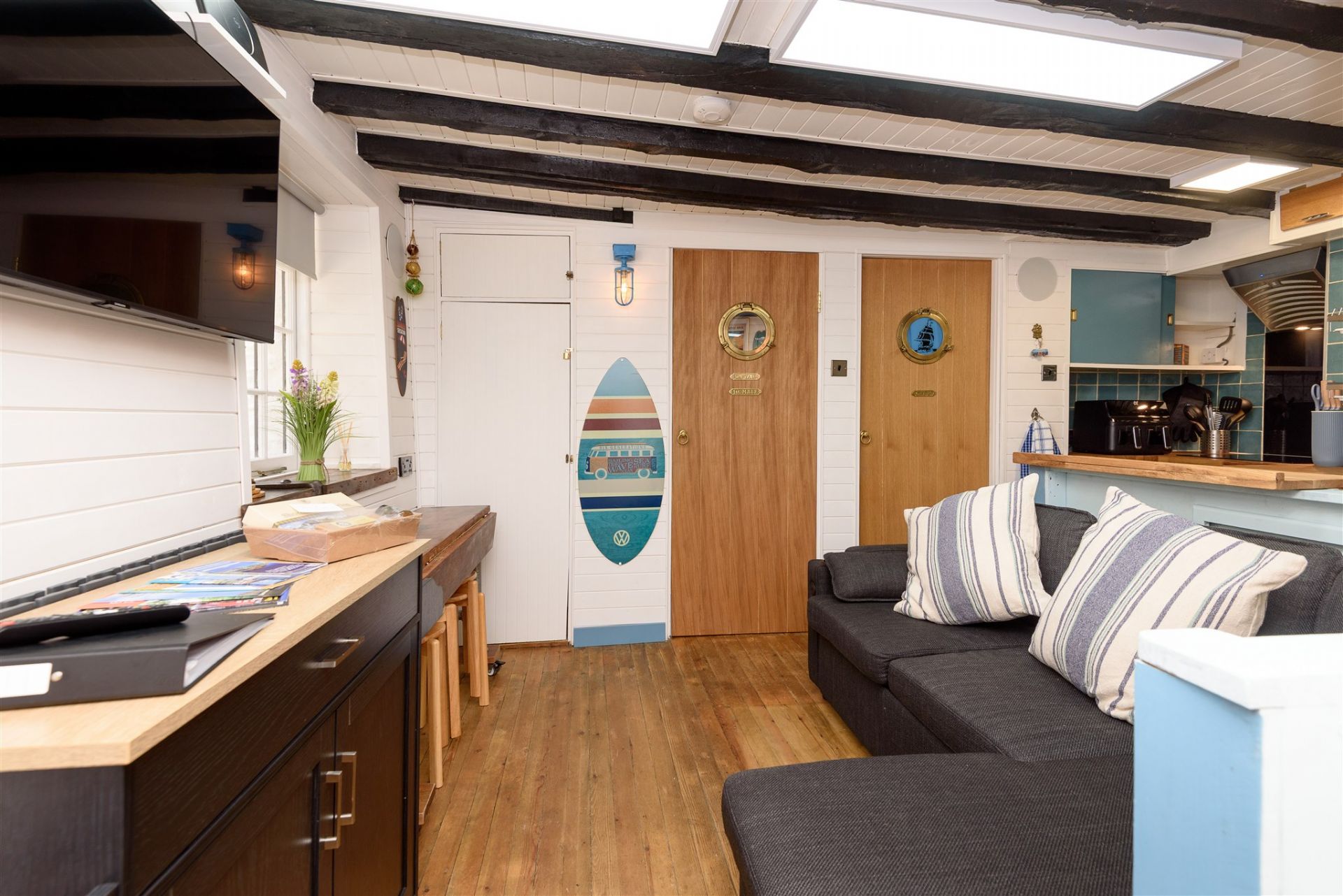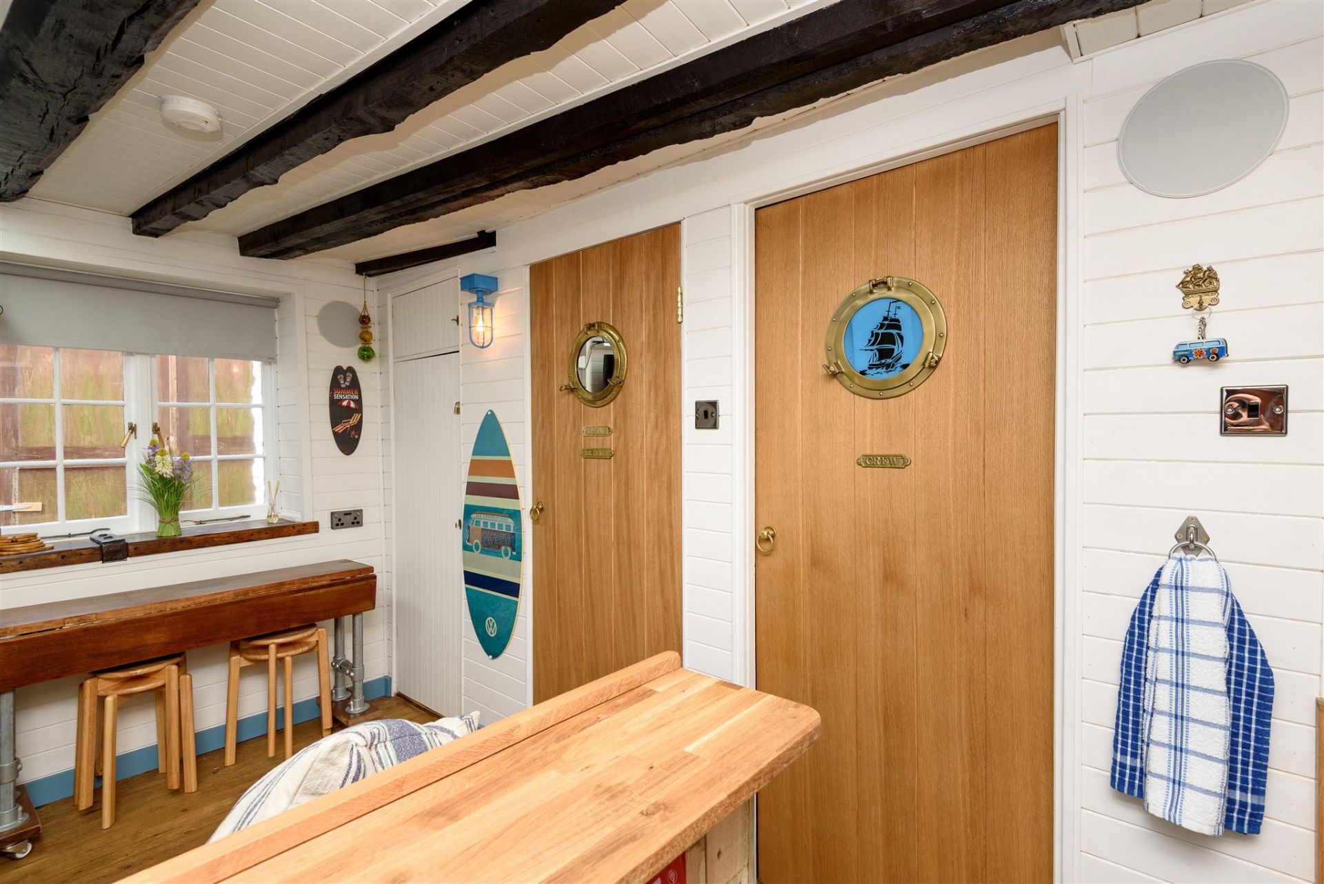 Please note, access to Galleon involves stepping over a low barrier and down one step into the property. Its layout is compact and there are areas of limited head height through some doorways. Sorry, no babies or children under 6.