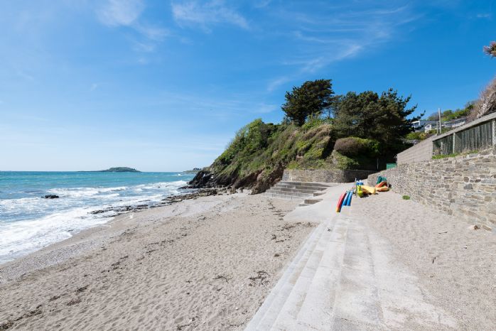 From the rear garden there are pleasant views to the sea and there are two beaches immediately available only a 5 minute walk away. The rear garden is decked at several levels and provides a quiet spot to sit and enjoy the views and perhaps a barbecue. Parking is available for one car in a private car park 25 yards from the cottage.