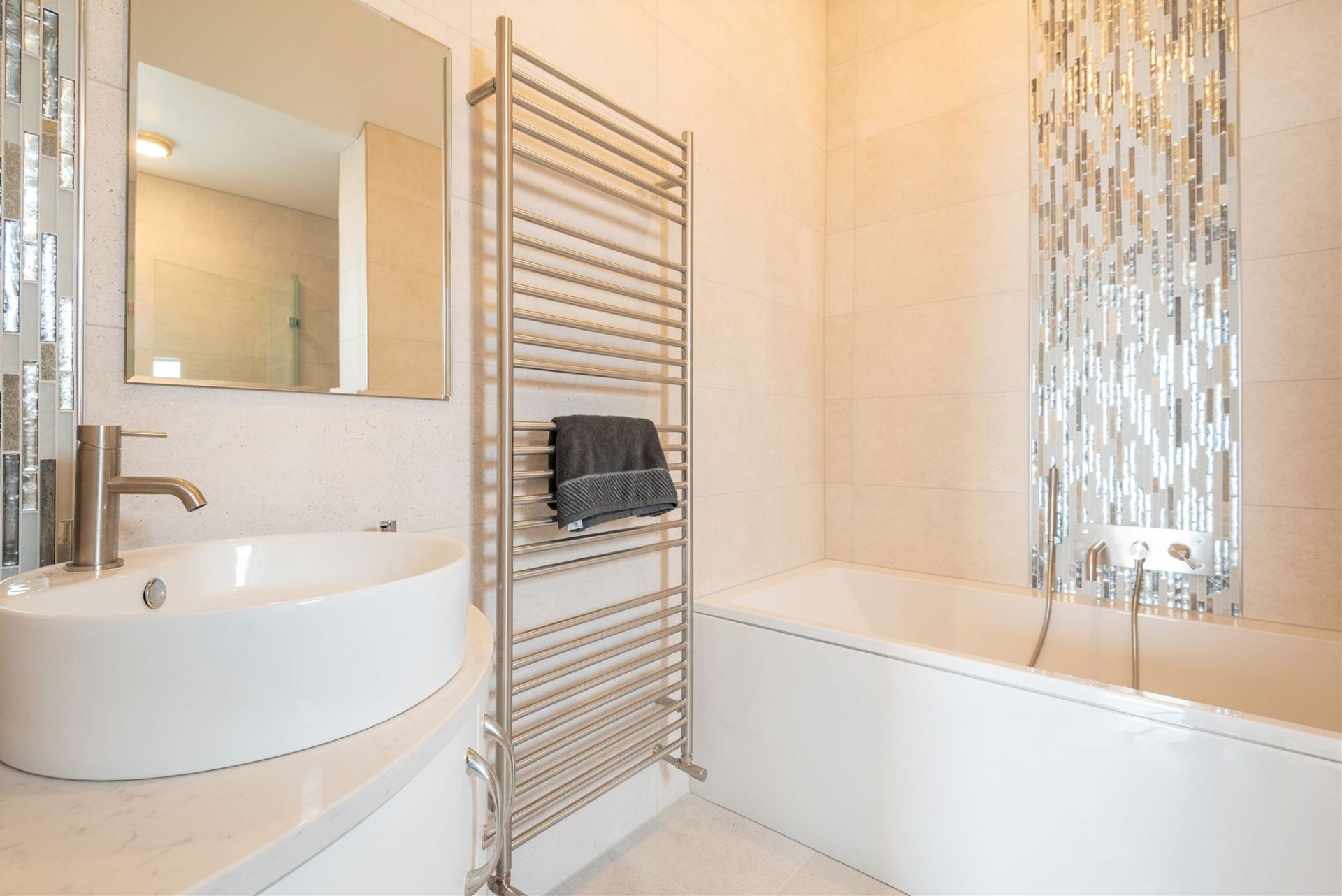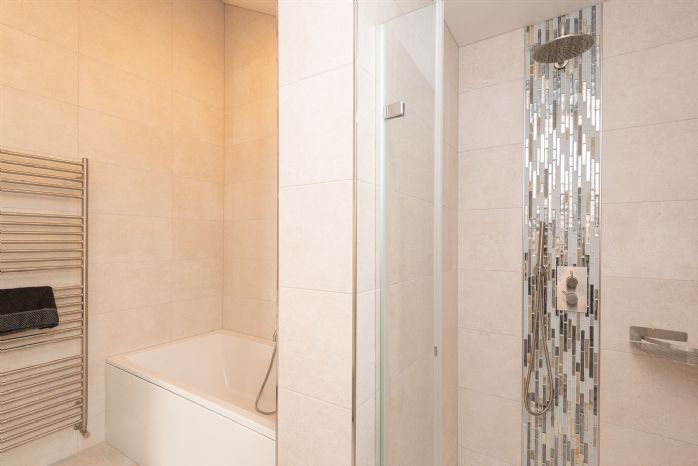 The kitchen is as stylish as it is functional, featuring sleek quartz worktops, integrated Bosch appliances, an induction hob, built-in oven and microwave, and a Sage Nespresso coffee machine (Creastista Plus)for that perfect morning brew. A separate utility room houses a washing machine and tumble dryer, keeping everything neat and convenient.