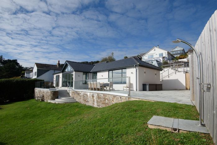 The Haven, a luxurious newly built beachfront retreat where contemporary design meets the beauty of the Cornish coast. Nestled on the shores of Plaidy Beach, this stunning four-bedroom bungalow offers uninterrupted panoramic views across Looe Bay from Rame Head to Looe Island. With access from the garden to the beach, stylish interiors, and exceptional attention to detail throughout, The Haven promises the ultimate seaside escape.